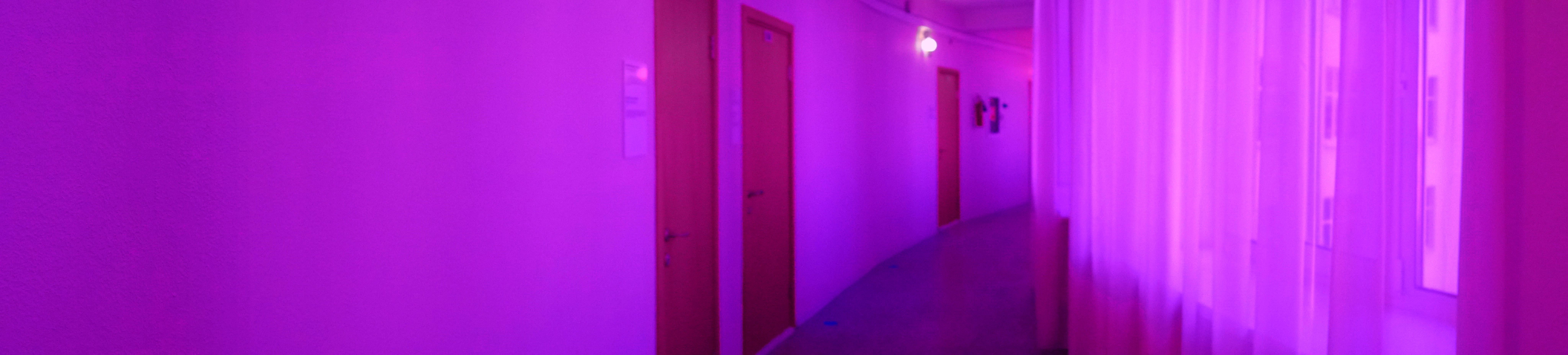 郑云瀚通过光和味道侵占空间,他通过改变通道光的颜色来还原某个历史时刻视角下,这一地区最繁荣的时期,或是接近黄昏金色的《日落》,或有着日常奇迹的《彩虹》,抑或是浪漫的《月光》。郑云瀚的作品保留了通道中的纱帘,让颜色和光停留在这一介质上,并在拍摄照片的时候,被拍摄者发现。夜晚的时候,通道的灯光会在建筑的中间形成三个颜色的彩带,并默默的回应着这一地区的光荣与衰败。