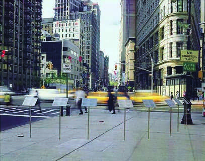 当然,我们在他的其他作品中依旧能够看到这种超越意识形态的表达。例如在《遗失手套的纪念碑》里,艺术家并未高耸起所谓“纪念碑性”的宏大装置,而是选择了用“复活诗歌”来表现一个女人的生活回忆。作品巧妙而庄严的如同唱诗班的舞台,但诗歌的前面却空无一人。遗失的手套象征着人类伟大的文学传统,街上的人们却穿行在这些诗谱之中未曾停留。